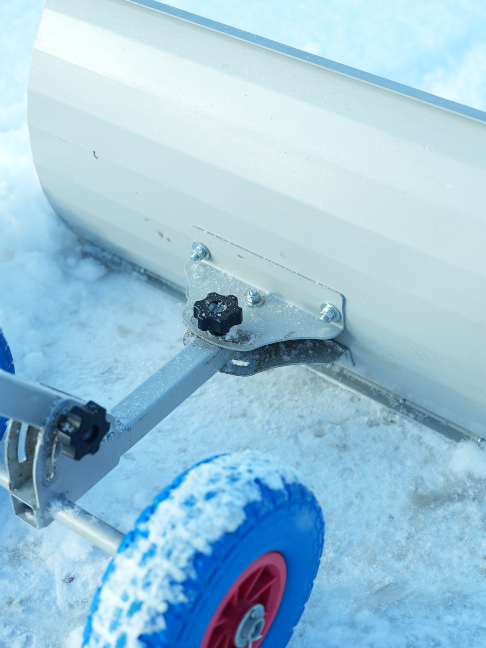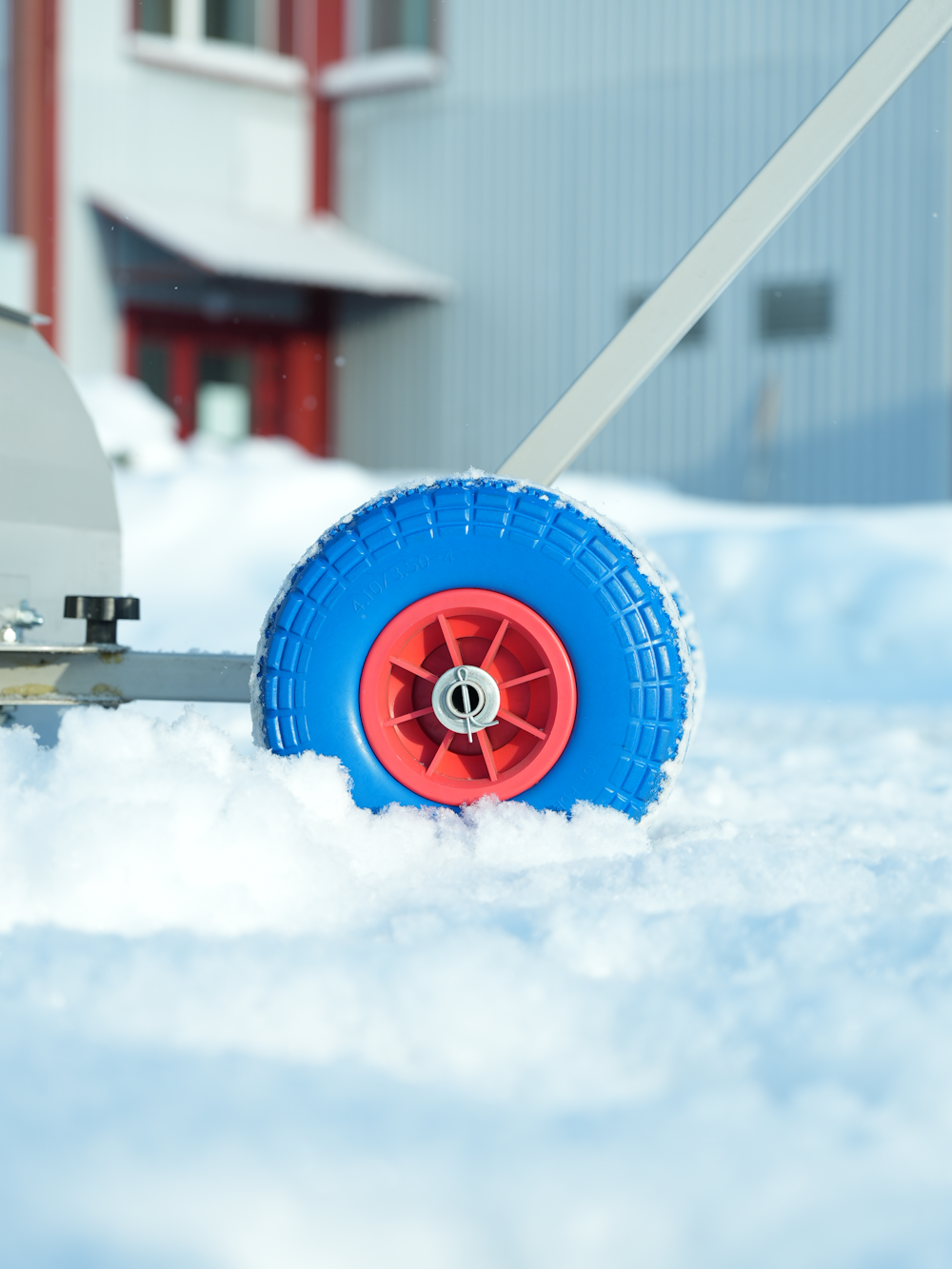 Для облегчения работы в его конструкции предусмотрены литые, непробиваемые колеса, которые обеспечат отличное сцепление со снежной поверхностью.