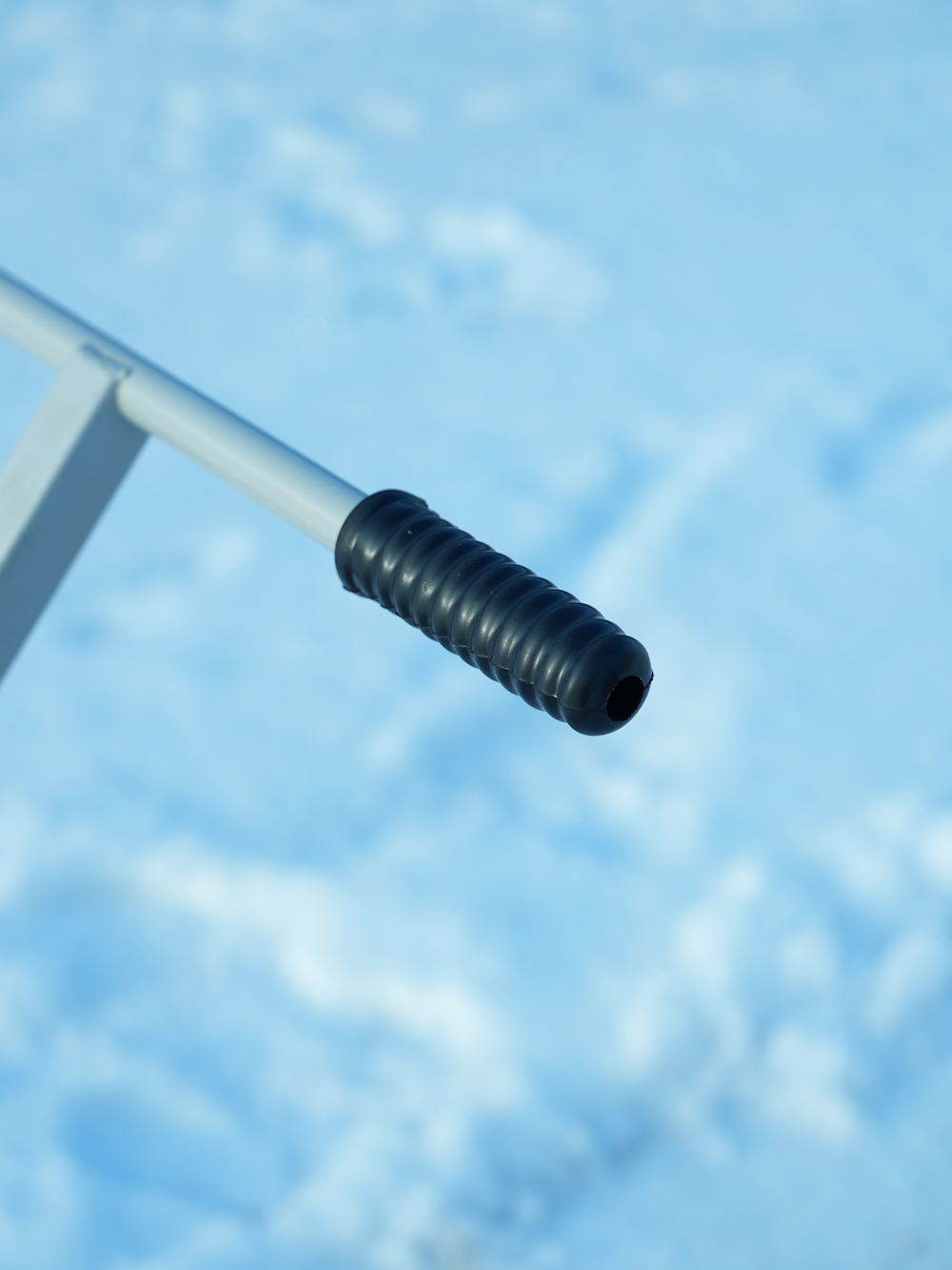 На ручке установлены резиновые накладки, а саму ручку можно отрегулировать под рост пользователя для удобства работы.